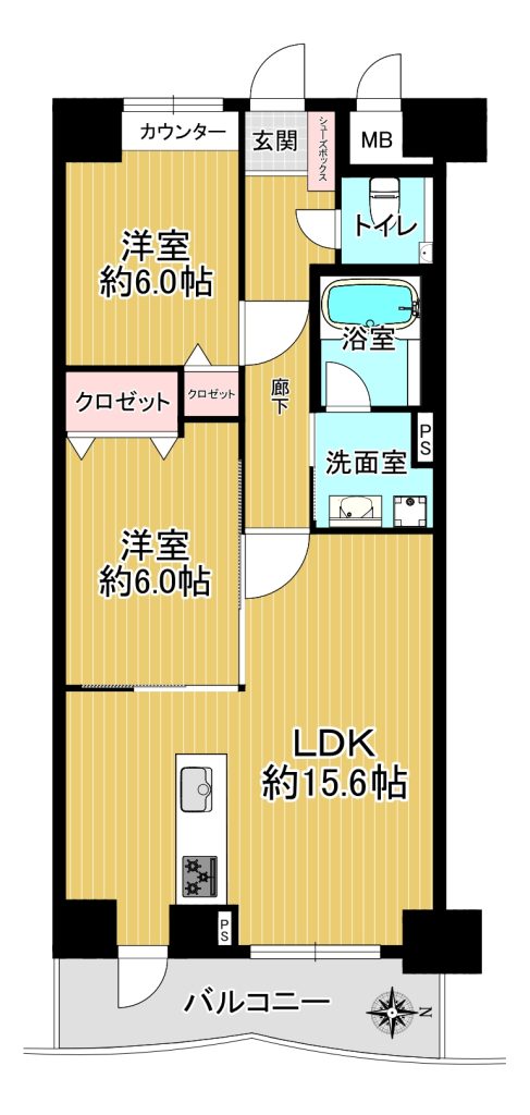 ■専有面積61.75㎡!2LDKの間取り!