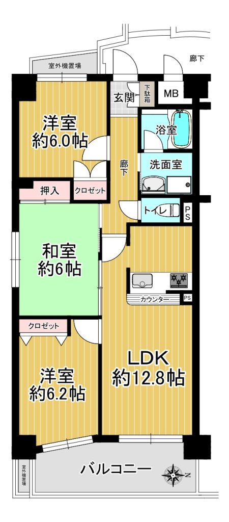 ■専有面積66.29㎡の3LDKの間取り!