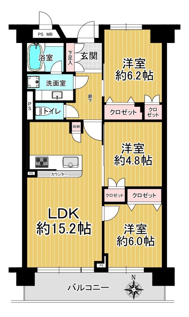 ■専有面積70.44㎡の3LDKの間取り!